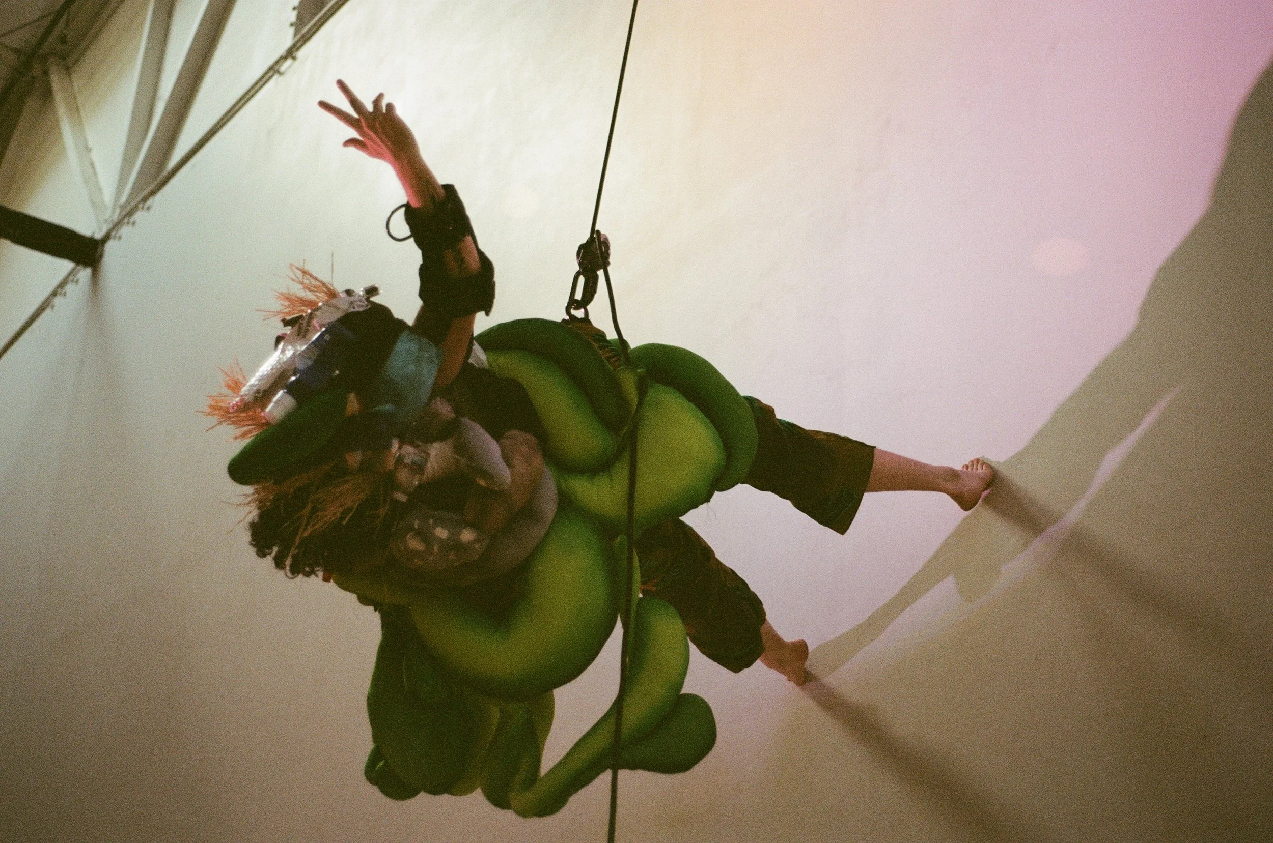 Former was a vertical dance solo exploring transition and transformation. Taking place within an installation of mirrors and plant life, the work invited audiences to see themselves reflected in nature while witnessing Dean’s embodied investigation of change. Marking one year of hormone replacement therapy and anticipating top surgery, Former employed vertical dance technology and costume to ride the momentum of natural forces, asking: "What change can come if we let it?"